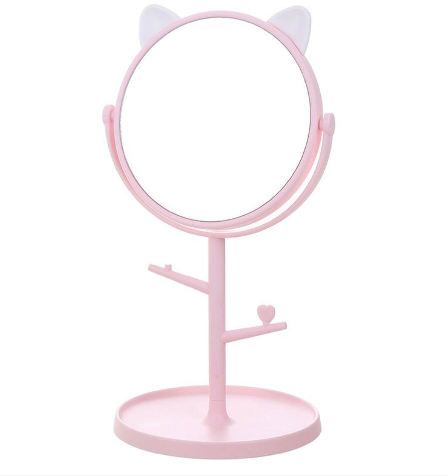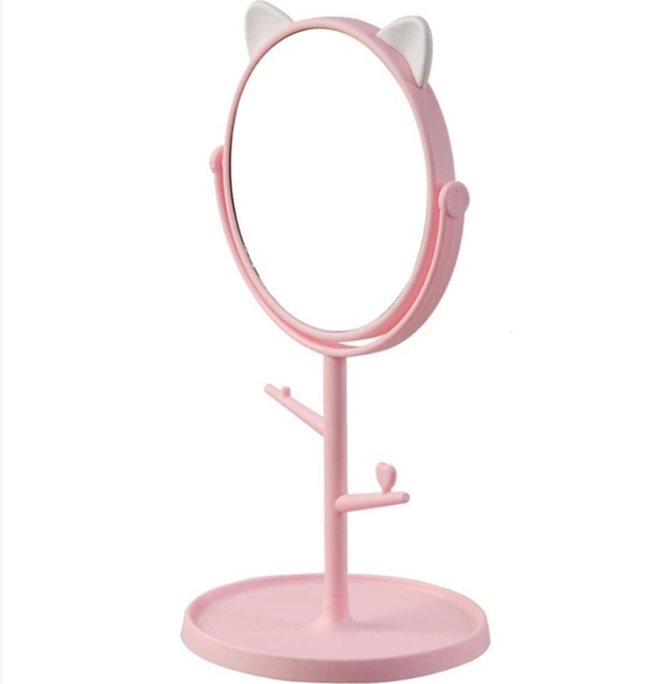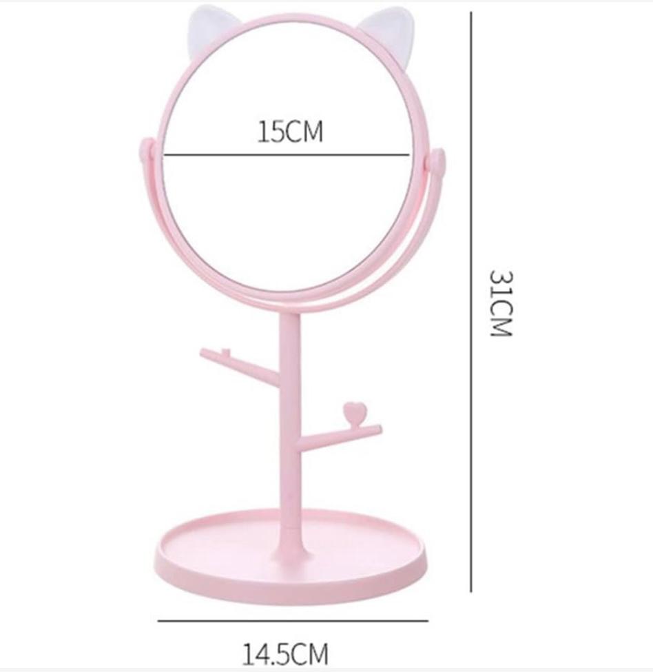 Oglinda cosmetică combină funcționalitatea cu designul jucăuș, având urechi de ursuleț și un look modern, ideal pentru machiaj și îngrijire personală. Rotirea la 360° și baza rotundă multifuncțională oferă o vizualizare perfectă, iar brațele laterale pentru bijuterii asigură organizare practică și acces rapid la accesoriile tale. Compactă, elegantă și veselă, devine un must-have pe masa ta de beauty.